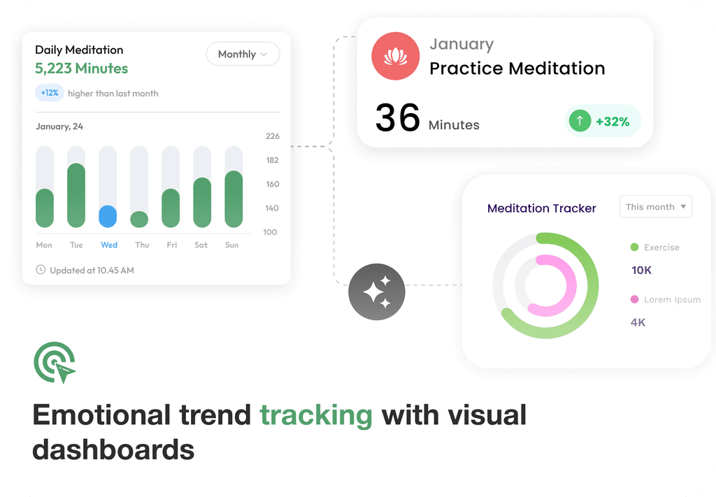 Our dashboards provide clear, actionable visualizations of your emotional and mental trends, giving you a deeper understanding of your journey